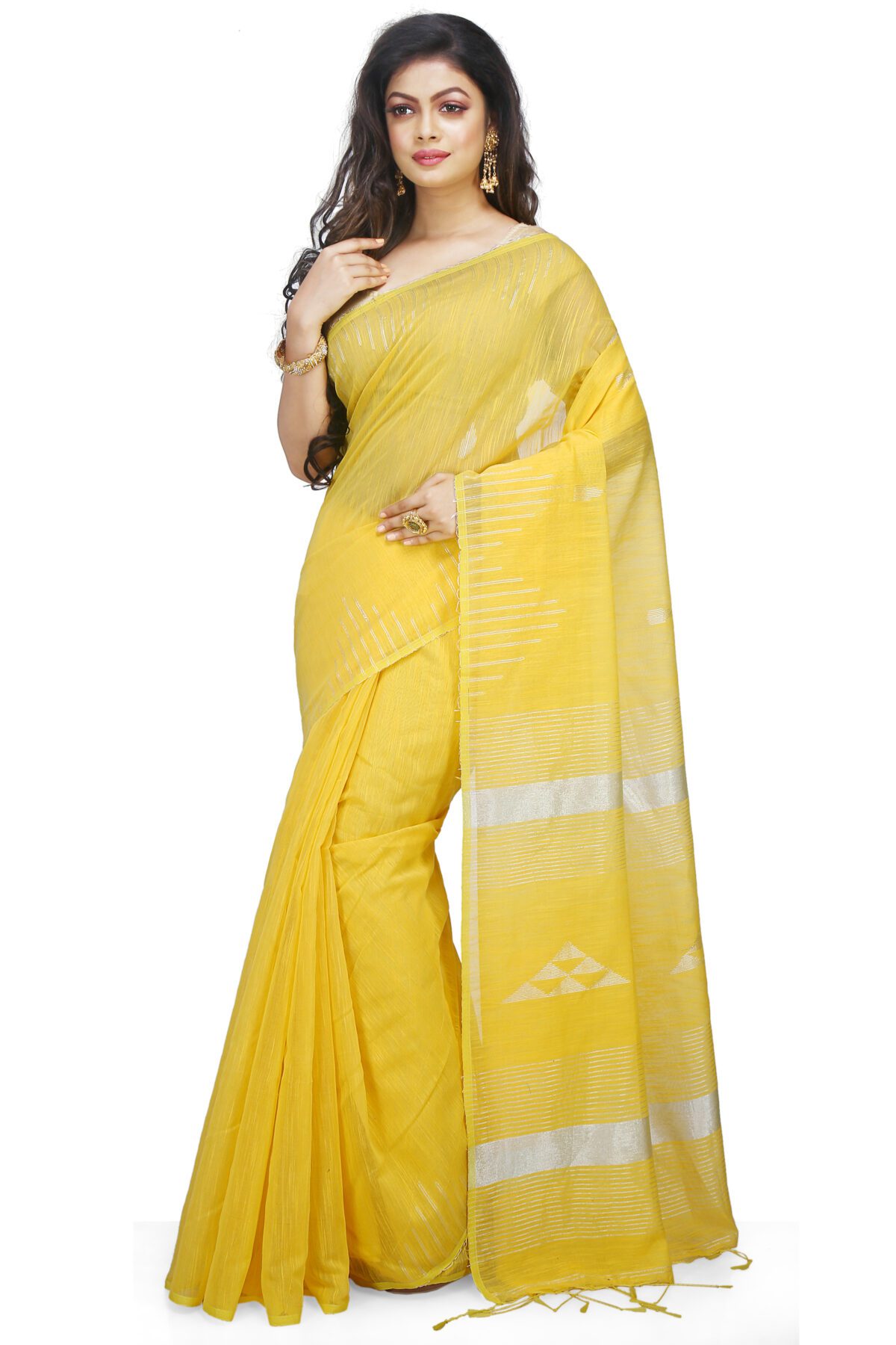 Women’s Cotton Linen Slab Sarees with Jaquard Work
